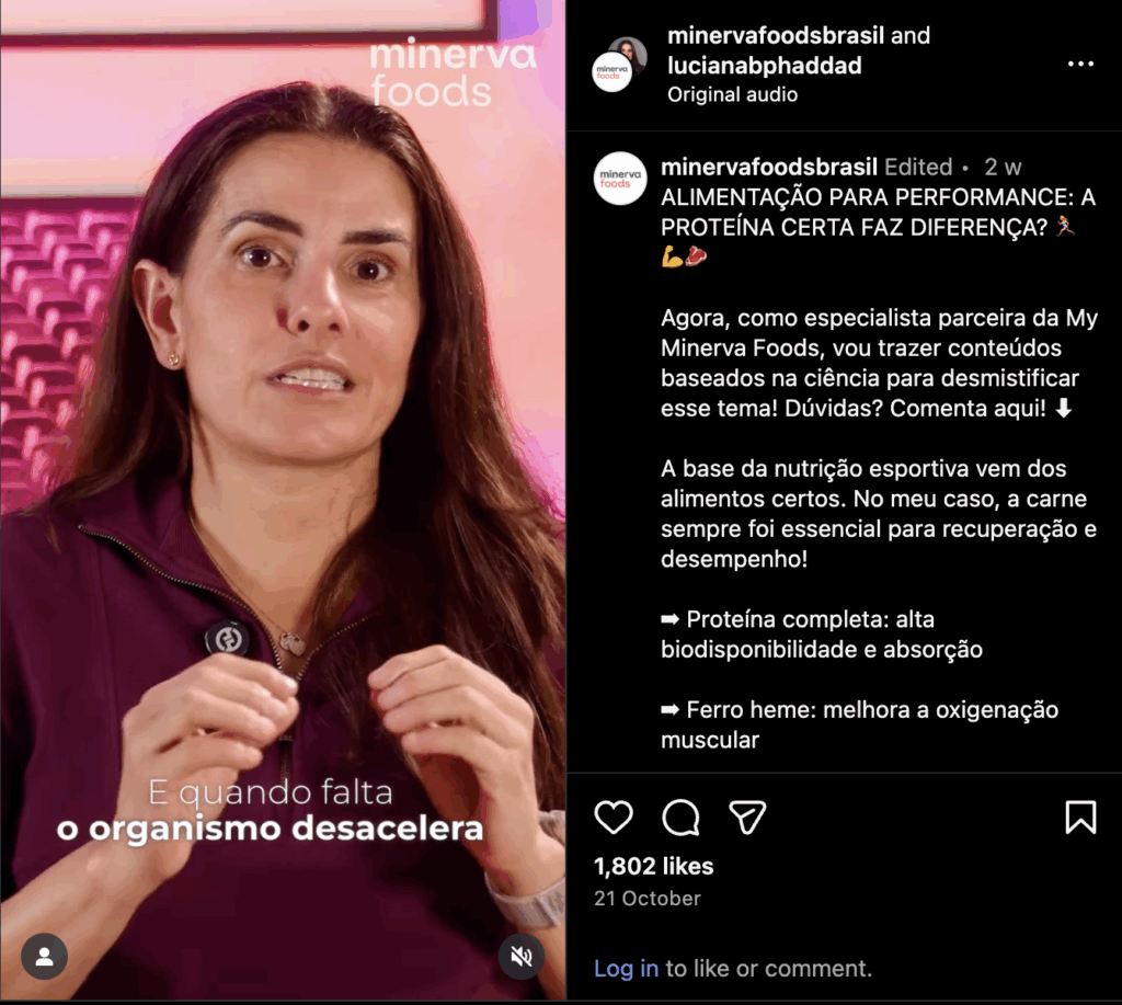 Fitness expert and television personality Marcio Atalla featured in a February video for Minerva, in which he told his 1.1 million followers that meat โis an excellent source of protein, vitamins, and minerals, essential for health, lean muscle gain, and even for the heart!โ Atalla also said: โI trust Minerva Foods, which guarantees quality and is committed to sustainability.โ