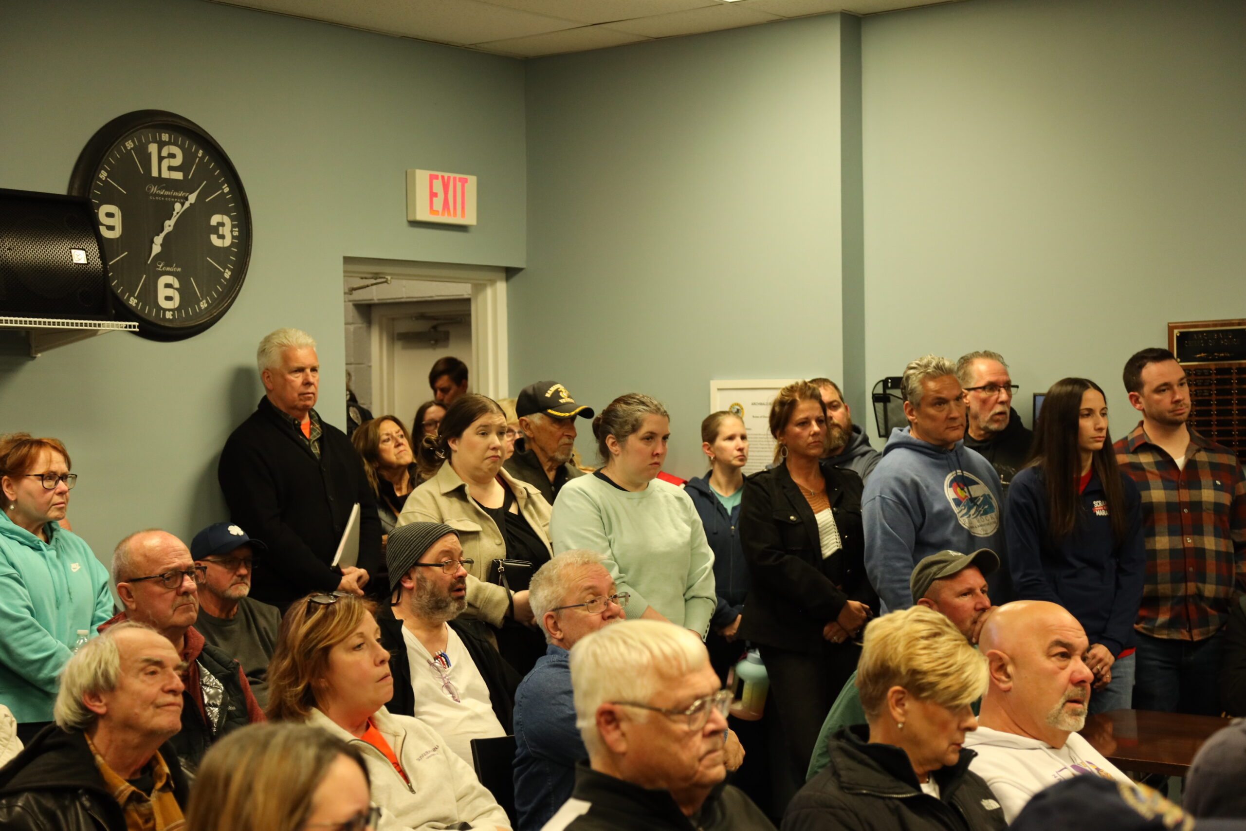 Many locals speculated that the councilโs decision had already been made โ and murmured that the overflow conditions and inconvenient 5 p.m. start time were a ploy to suppress public participation. Some said that the borough had ignored their written request to hold the meeting in a more spacious venue. After the recitation of the Pledge of Allegiance, Owen called the conditions โunacceptableโ and a โsafety hazard,โ and asked for the meeting to be rescheduled to accommodate all residents.
