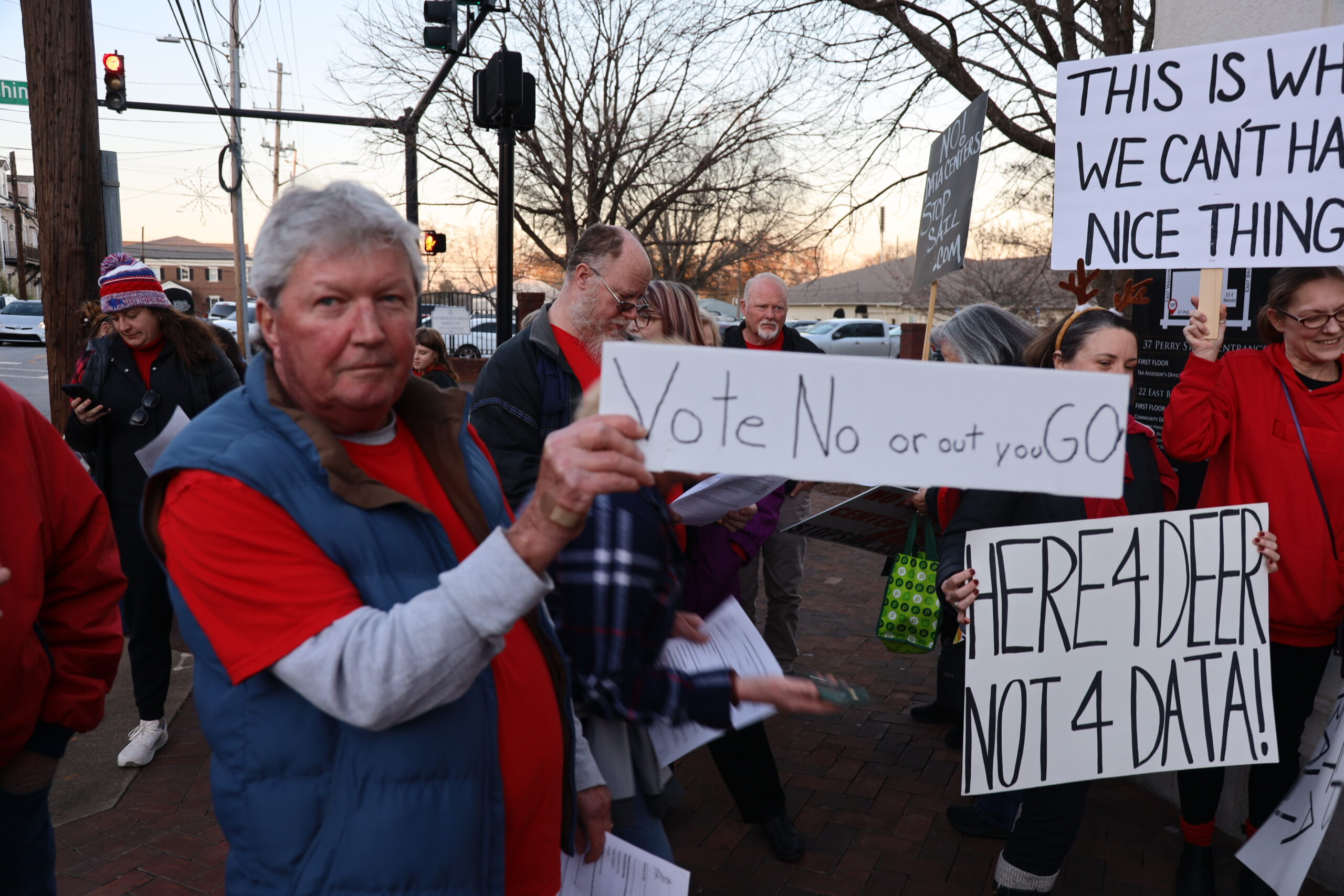 At about 5 p.m. on Tuesday, Dec. 17, Jacqueline Lassetter joined a crowd of residents gathering outside the Coweta County chambers in Newnan to attend the council vote on the new zoning rules for data centers.